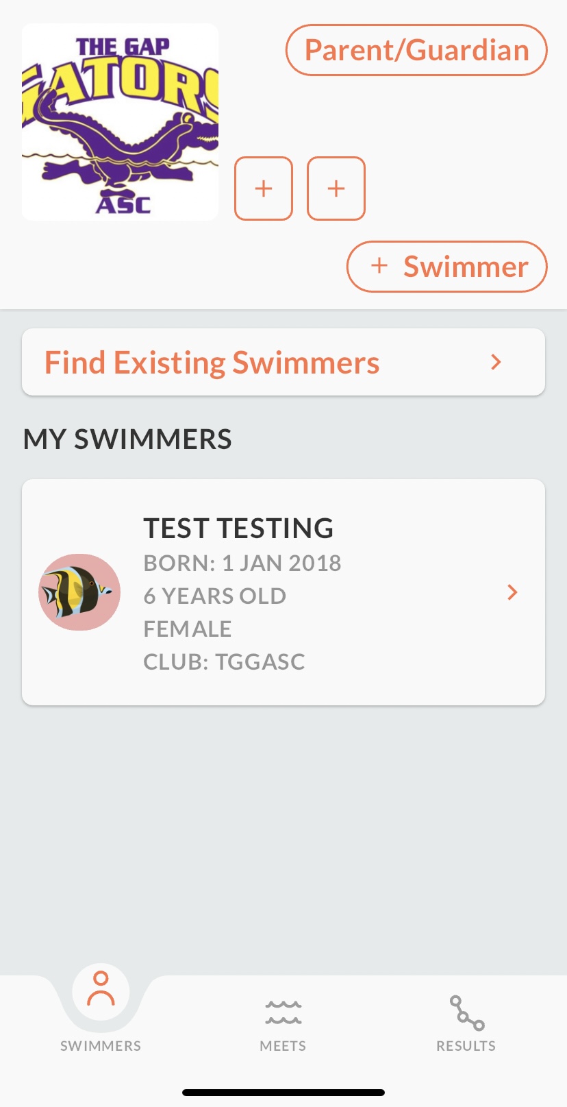 5. Create your swimmers profile by tapping the ‘+Swimmer’ button.
